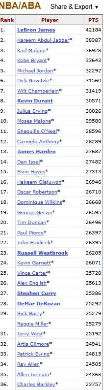 艾弗森职业生涯总得分——24368分,历史第三十五