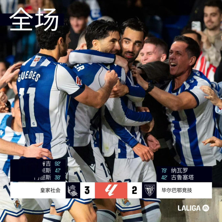 皇家社会3-2毕尔巴鄂竞技