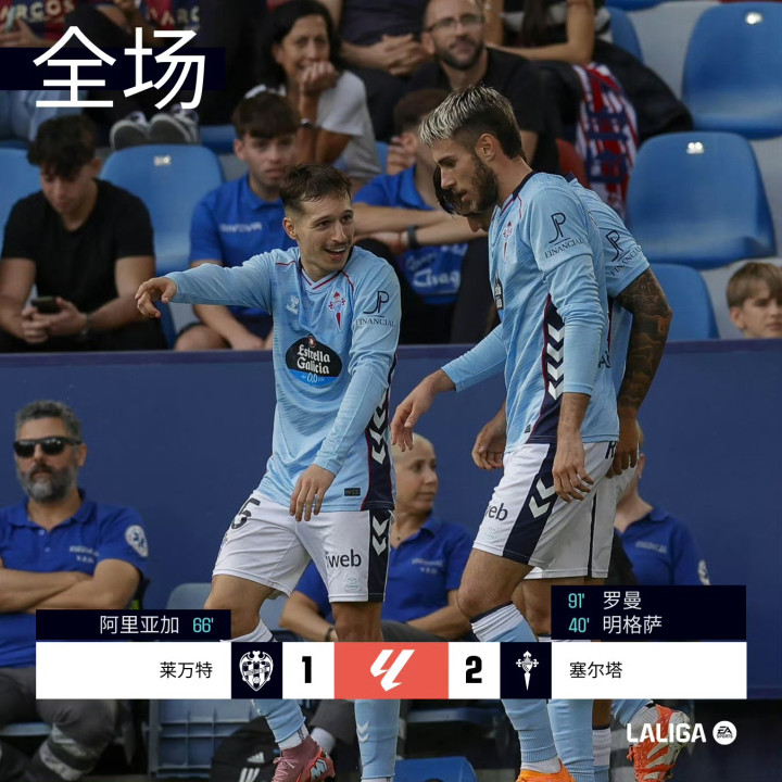 莱万特主场对阵塞尔塔。破门。塞尔塔明格萨于第40分钟首开纪录,第66分钟,莱万特阿里亚加扳平比分,补时阶段第90+1分钟,米格尔-罗曼绝杀。最终比分莱万特 1-2 塞尔塔。塞尔塔豪取客场两连胜,莱万特惨遭3连败的同时,延续开季主场1平4负不胜的尴尬。