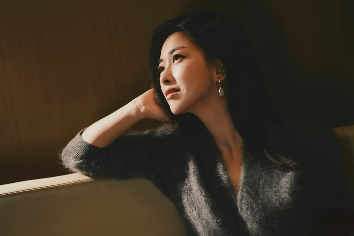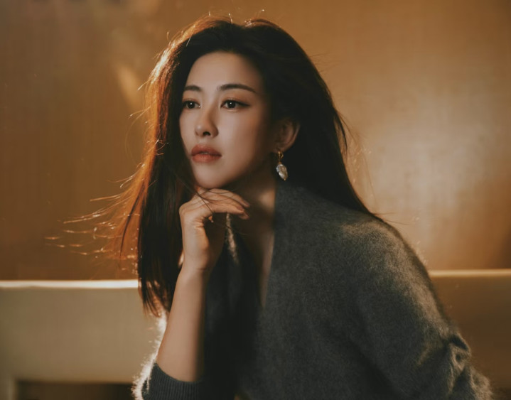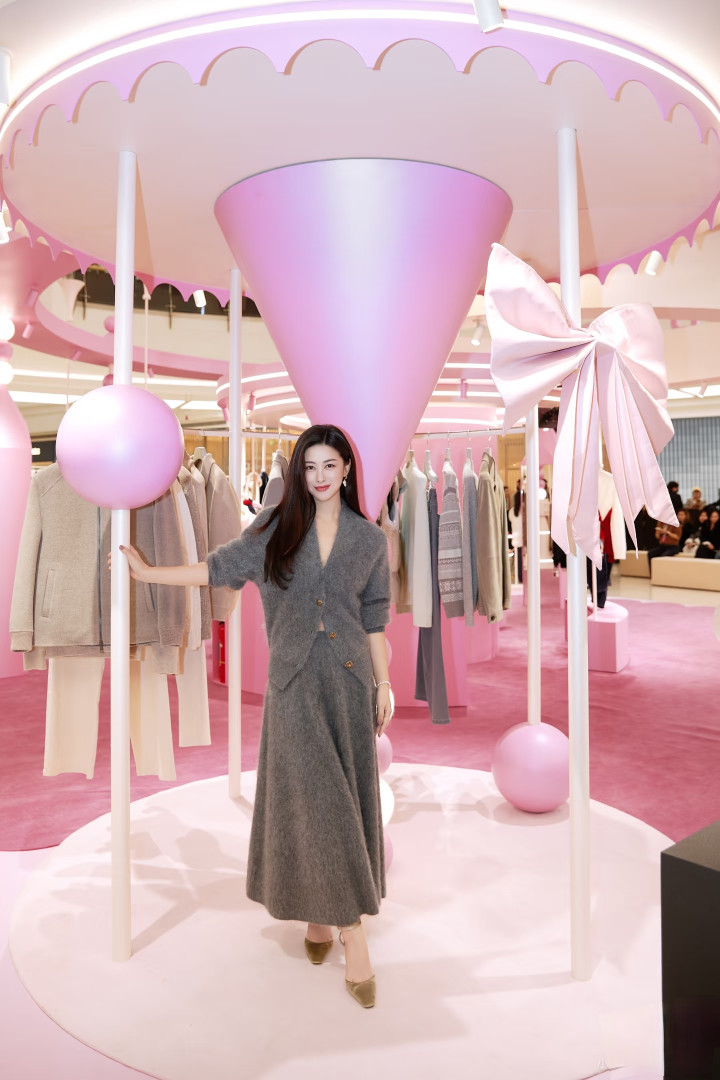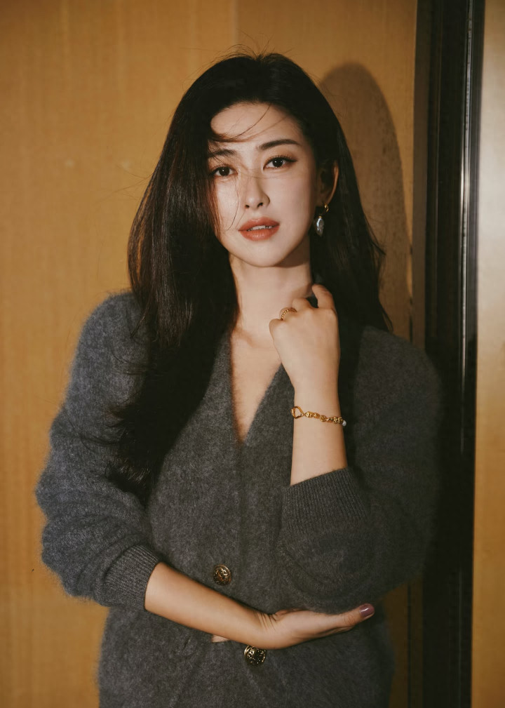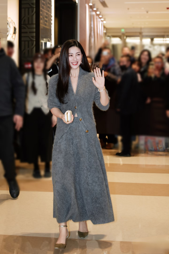 朱珠晒新照, 灰毛绒套装配长卷发, 气质优雅好惊艳